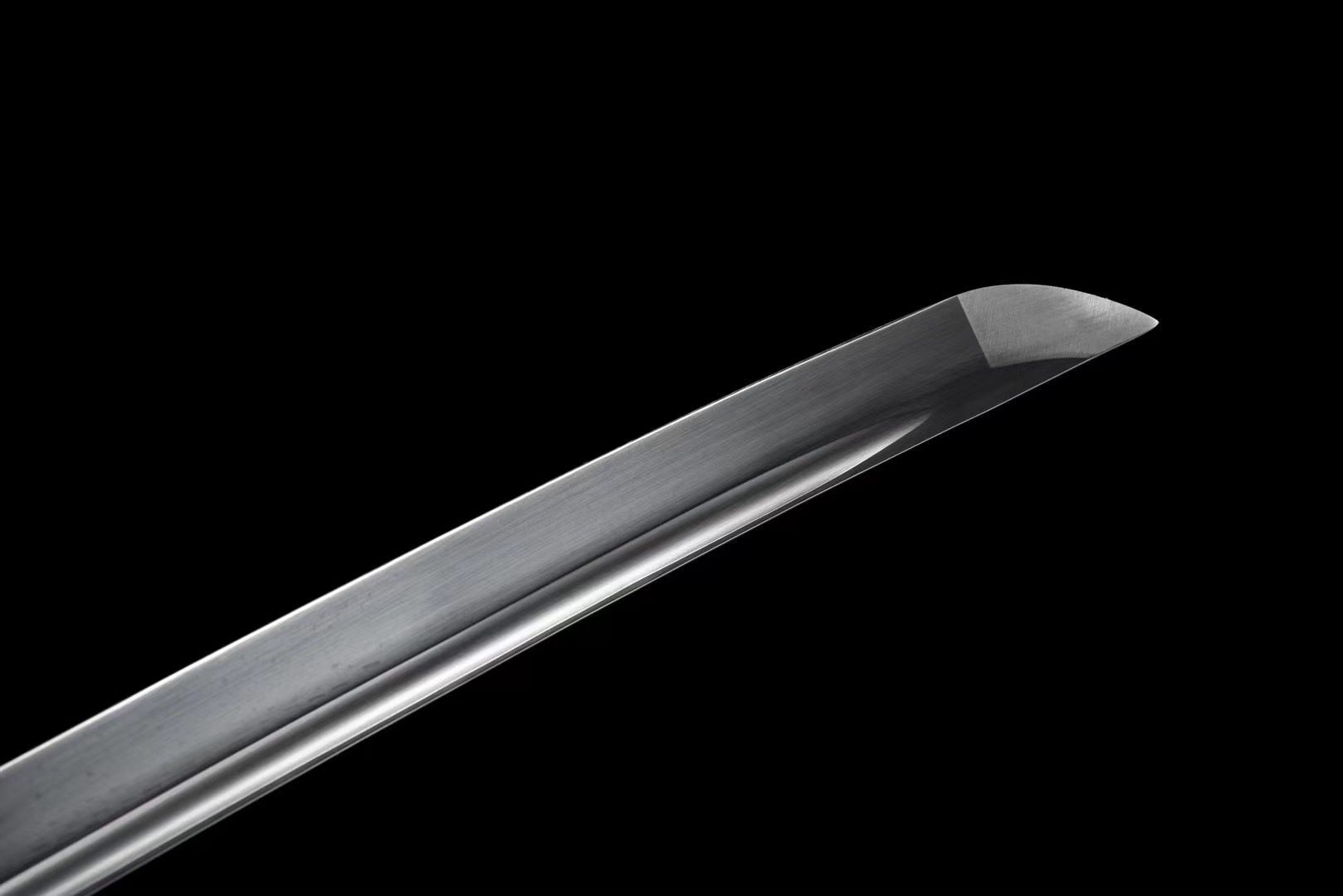 Su hoja de acero T10 tiene un acabado espejo que refleja elegantemente la luz, mientras que el bo-hi aligera la estructura y produce un característico silbido cuando se mueve. La guarda de aleación negra está adornada con un baño de oro, complementada con fuchi y kashira con acabados preciosos a juego. La empuñadura combina la textura rugosa de la piel de raya blanca sintética con un trenzado negro con patrón de diamantes, enmarcado por menuki que representan dragones dorados, símbolos de poder y sabiduría. La vaina de madera lacada está adornada con delicadas flores pintadas, que evocan un jardín japonés en plena floración, mientras que el sageo negro añade un toque de elegante sobriedad.