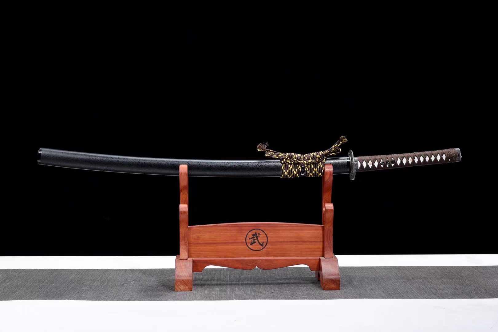 - Tsuka-ITO (柄糸): tejido con patrón de rombos marrones sobre la empuñadura.
