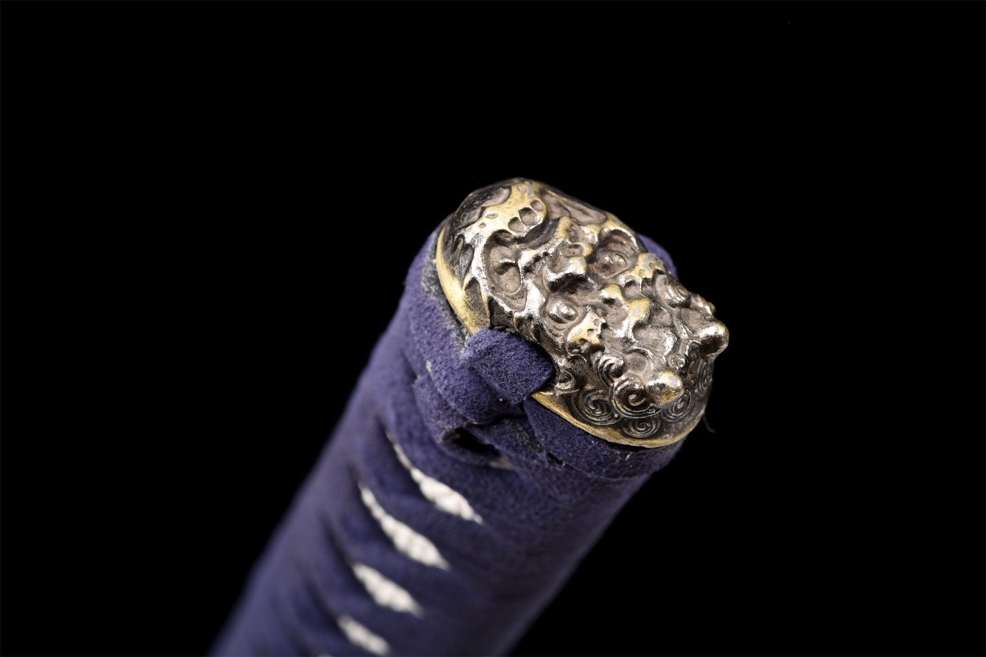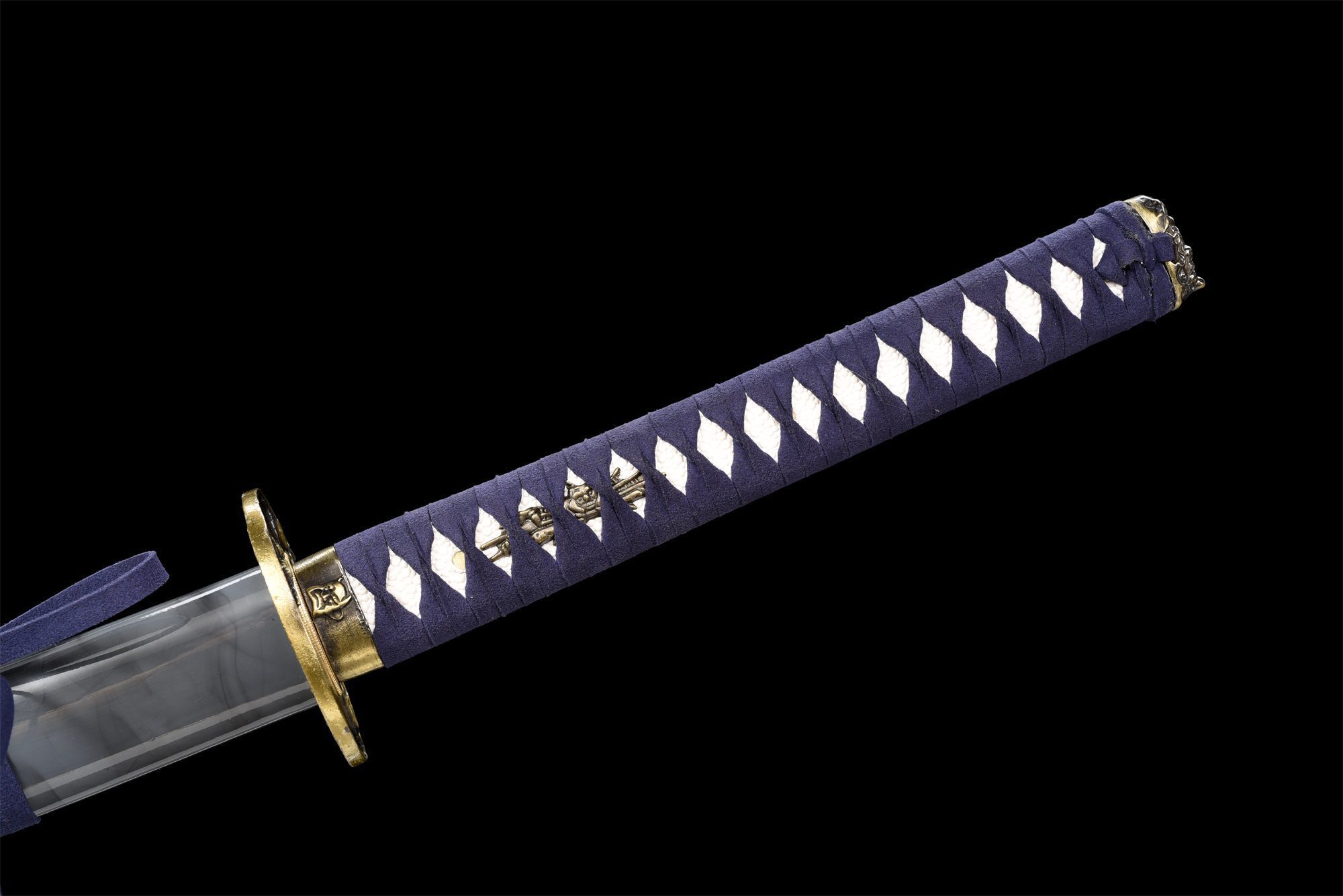- Tsuka-ITO (柄糸): Azul trenzado en forma de rombos sobre la empuñadura.