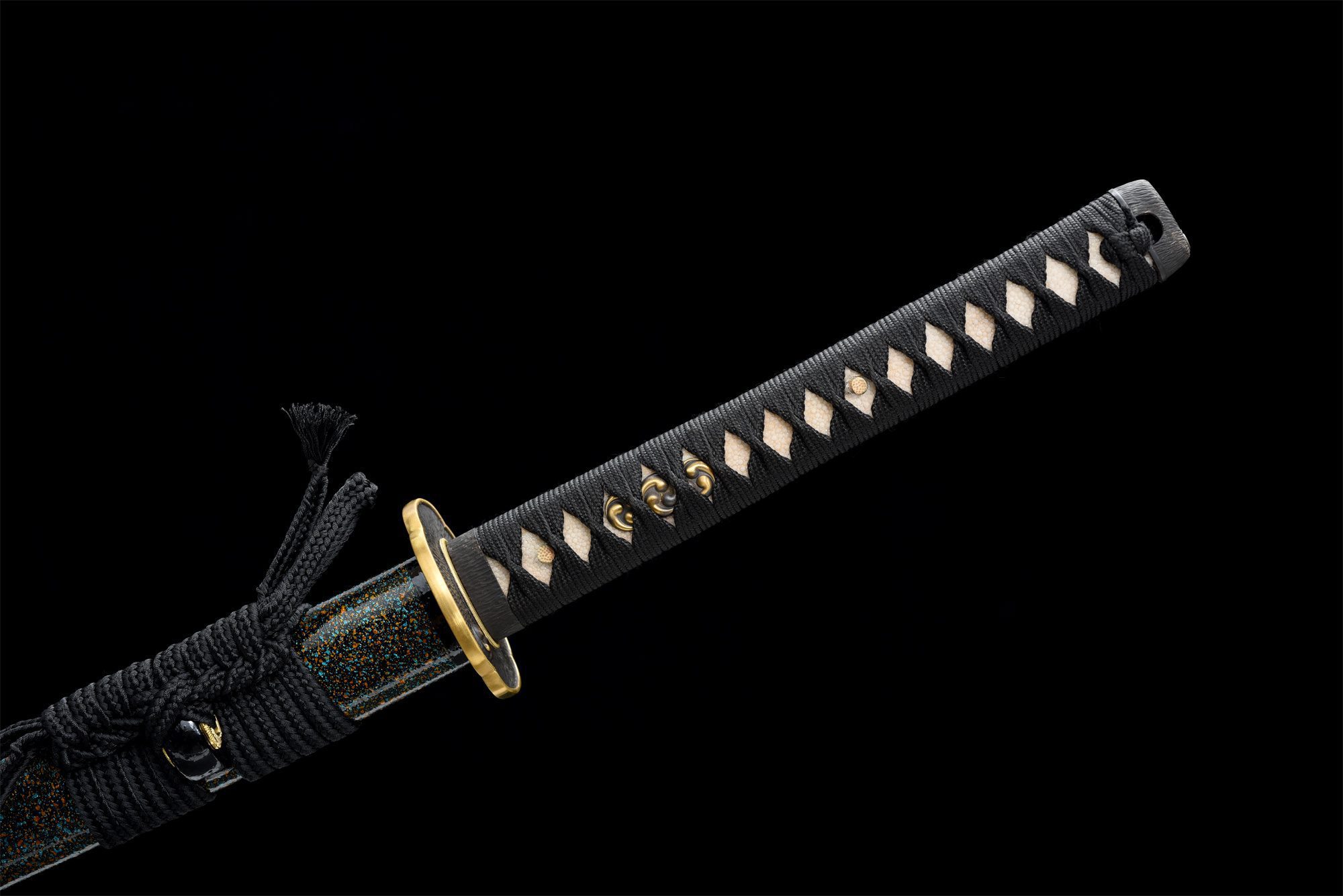 - Tsuka-ITO (柄糸): Negro trenzado sobre la empuñadura en forma de rombos.