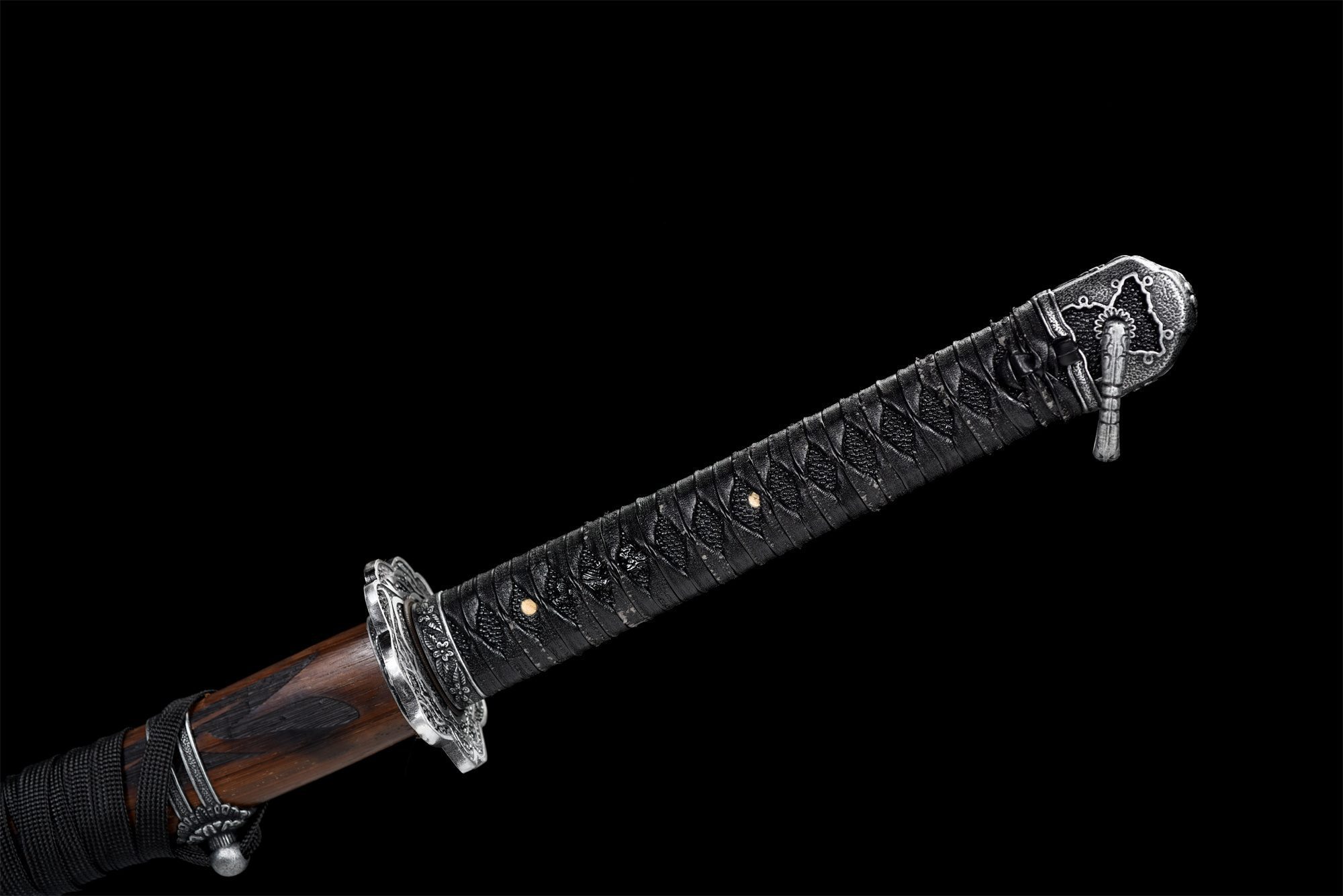 - Empuñadura (Tsuka 柄): Empuñadura de imitación de piel de raya negra y palo de rosa.